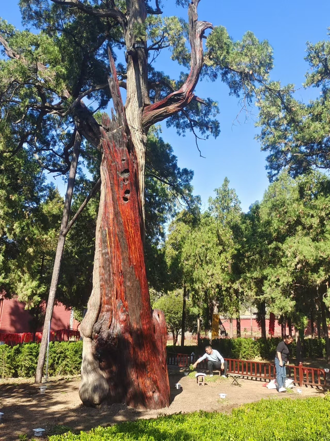 在去年秋天,为了提升这些侧柏的生存环境质量,当地林业部门对树体周围进行了松土透气、开挖复壮沟、设置透气装置等措施,以补充树木营养、调节土壤酸碱度。